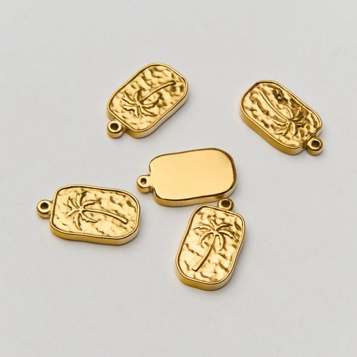 Zawieszka ze stali chirurgicznej palma w prostokącie w kolorze złotym 17,5mm PVD