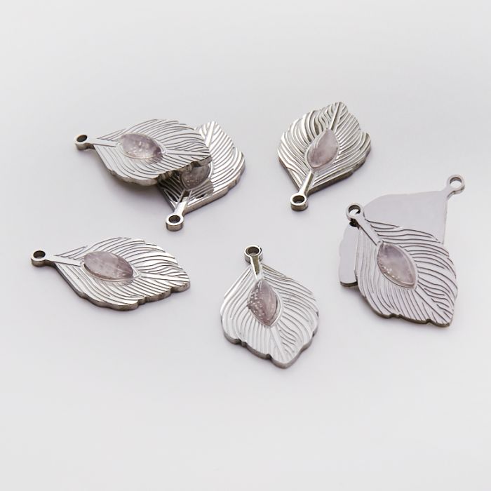 Zawieszka ze stali chirurgicznej pawie pióro z kryształem górskim w kolorze srebrnym 26mm