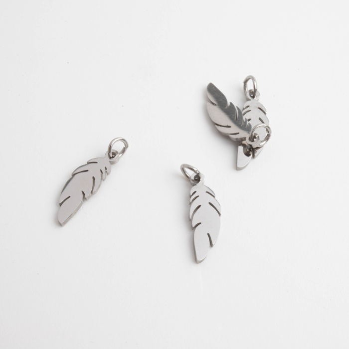 Zawieszka ze stali szlachetnej piórko w kolorze srebrnym 13,5mmTo trwały element biżuterii lub półfabrykat jubilerski, który dobrze sprawdza się w codziennych realizacjach. Stal szlachetna to materiał ceniony za trwałość i estetyczny wygląd w codziennym użytkowaniu.W tym produkcie zastosowano stal szlachetną