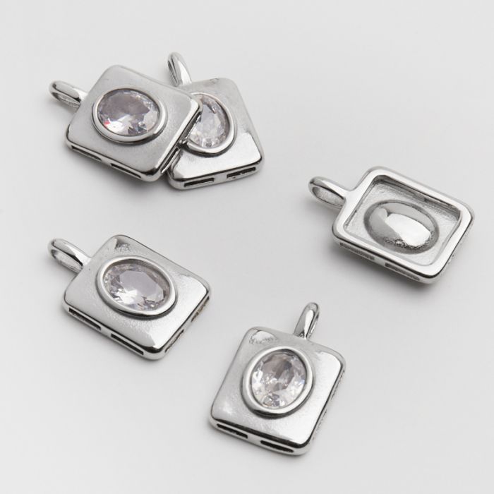 Zawieszka ze stali chirurgicznej prostokąt z białą cyrkonią w kolorze srebrnym 20,5mm