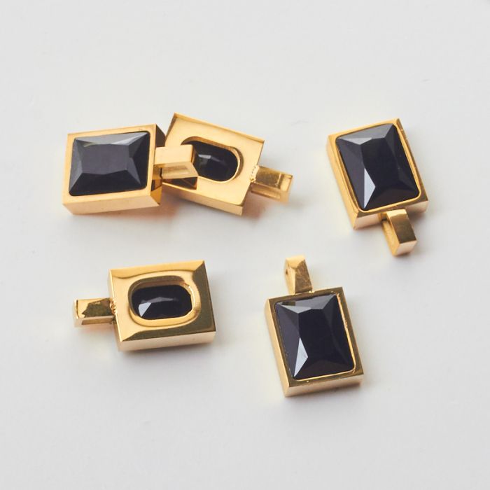 Zawieszka ze stali chirurgicznej prostokąt z cyrkonią onyks w kolorze złotym 9,5x7,5mm