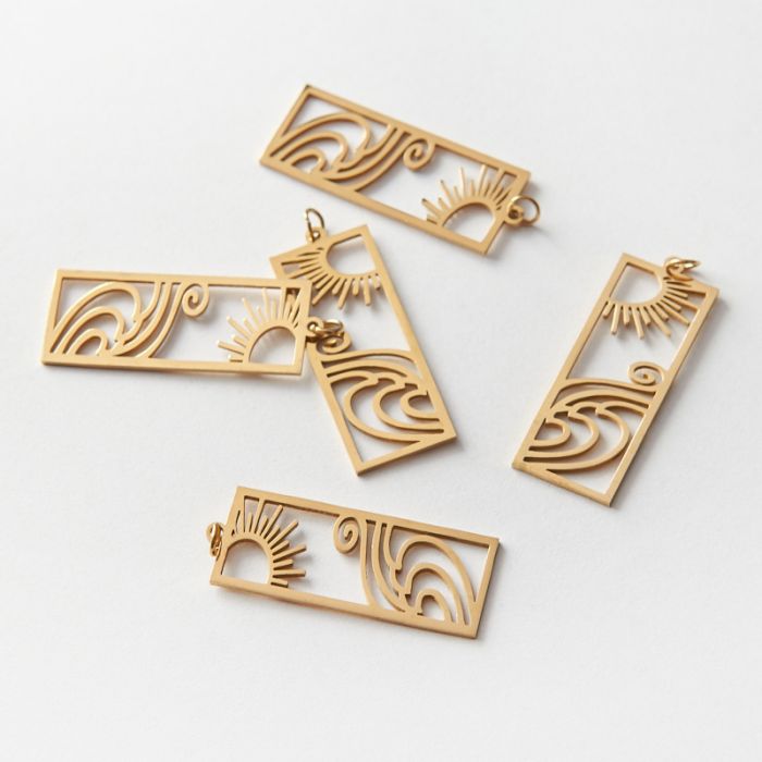 Zawieszka ze stali chirurgicznej prostokąt z krajobrazem w kolorze złotym 32x12mm PVD