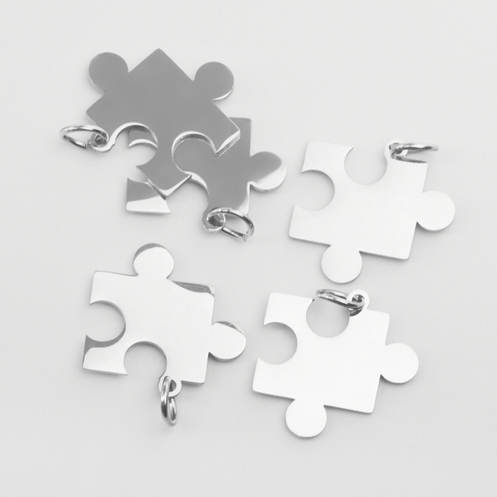 Zawieszka ze stali szlachetnej puzzel w kolorze srebrnym 17,5mmTo trwały element biżuterii lub półfabrykat jubilerski, który dobrze sprawdza się w codziennych realizacjach. To materiał chętnie wybierany do biżuterii handmade ze względu na trwałość, estetykę i wygodę użytkowania.Stal szlachetna to materiał ceniony za trwałość i estetyczny wygląd w codziennym użytkowaniu.W tym produkcie zastosowano stal szlachetną