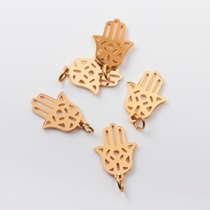 Zawieszka ze stali chirurgicznej ręka fatimy w kolorze złotym 17mm