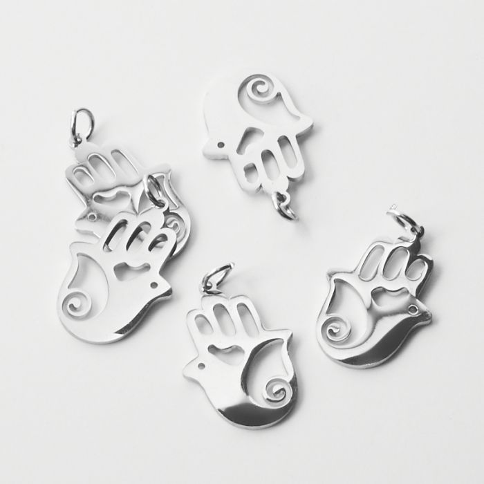 Zawieszka ze stali chirurgicznej ręka fatimy ze skrzydełkiem do naszyjników w kolorze srebrnym 22mm