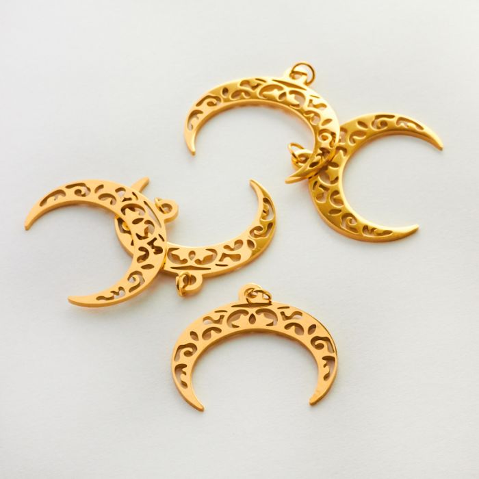 Zawieszka ze stali chirurgicznej róg obfitości ażurowy w kolorze złotym 21,5mm PVD