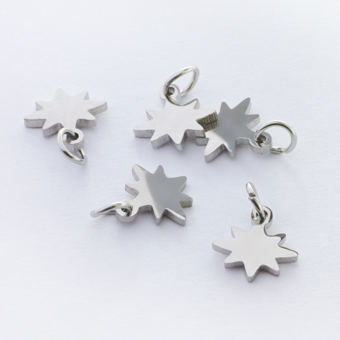 Zawieszka ze stali szlachetnej róża wiatrów kolor srebrny 9,5mmTo estetyczny element biżuteryjny ze stali szlachetnej, chętnie wybierany do nowoczesnych projektów. Stal szlachetna to materiał ceniony za trwałość i estetyczny wygląd w codziennym użytkowaniu.W tym produkcie zastosowano stal szlachetną