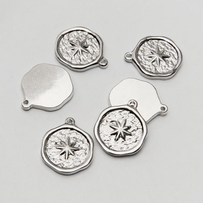 Zawieszka ze stali chirurgicznej róża wiatrów w kółku w kolorze srebrnym 17mm