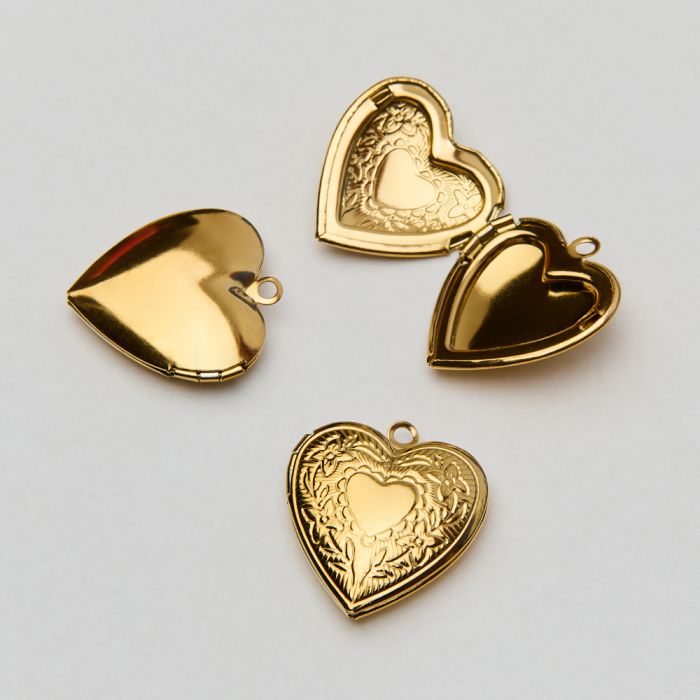 Zawieszka ze stali chirurgicznej sekretnik serce zdobione w kolorze złotym 24,5mm PVD