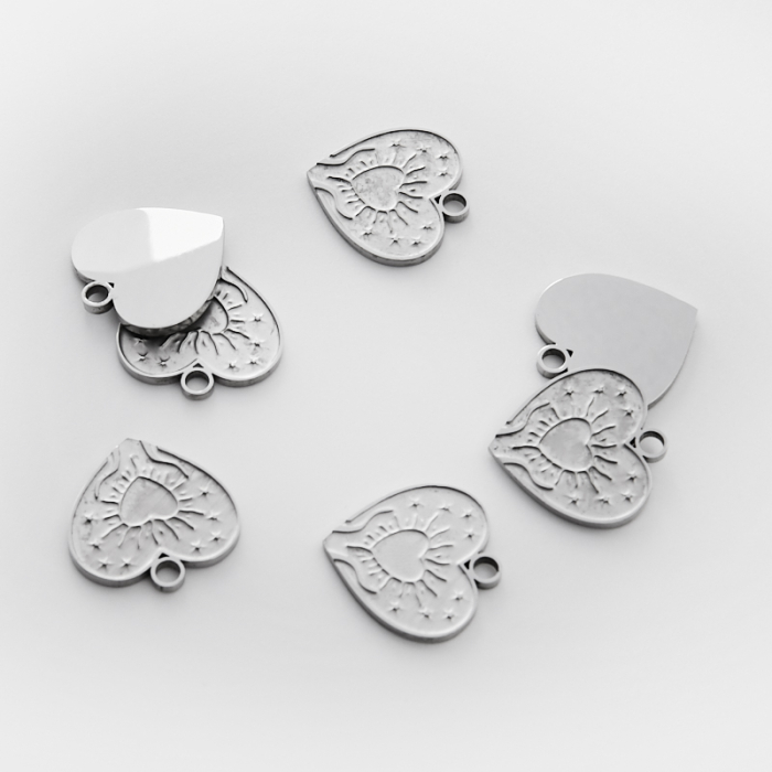 Zawieszka ze stali chirurgicznej serce ozdobne w kolorze srebrnym 18mmTo trwały element biżuterii lub półfabrykat jubilerski, który dobrze sprawdza się w codziennych realizacjach. Stal szlachetna dobrze sprawdza się w biżuterii noszonej na co dzień, ponieważ łączy trwałość z estetycznym wykończeniem.Zawieszka ze stali chirurgicznej to dekoracyjny element, który nadaje biżuterii charakteru i pozwala tworzyć spersonalizowane projekty. Świetnie sprawdza się w naszyjnikach, bransoletkach, kolczykach oraz drobnych charmsach.Forma lub motyw
