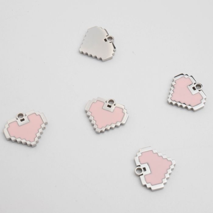 Zawieszka ze stali chirurgicznej serce pixelowe z emalią w kolorze srebrnym 12mm