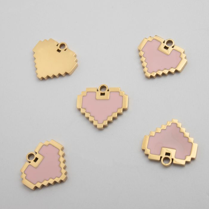 Zawieszka ze stali chirurgicznej serce pixelowe z emalią w kolorze złotym 12mm PVD