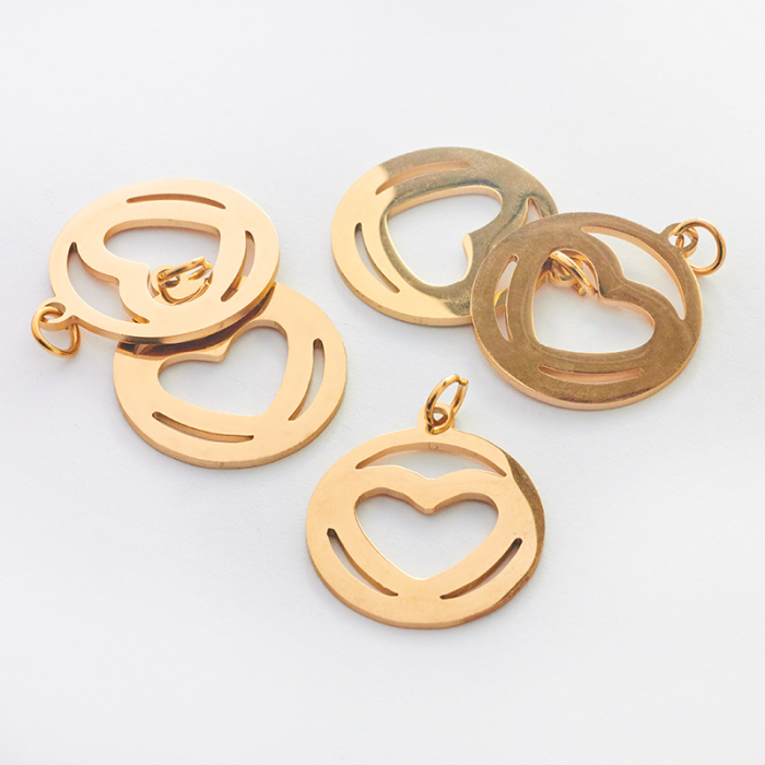 Zawieszka ze stali szlachetnej serce w kółku w kolorze złotym 20mmTo estetyczny element biżuteryjny ze stali szlachetnej, chętnie wybierany do nowoczesnych projektów. To materiał chętnie wybierany do biżuterii handmade ze względu na trwałość, estetykę i wygodę użytkowania.Stal szlachetna to materiał ceniony za trwałość i estetyczny wygląd w codziennym użytkowaniu.W tym produkcie zastosowano stal szlachetną