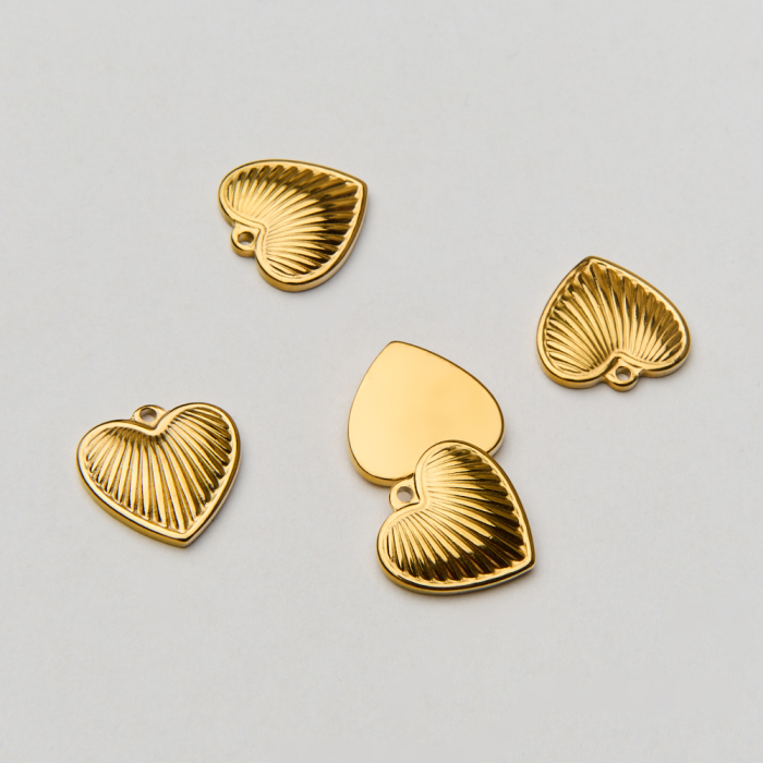 Zawieszka ze stali chirurgicznej serce w prążki w kolorze złotym 15mm PVDTo trwały element biżuterii lub półfabrykat jubilerski, który dobrze sprawdza się w codziennych realizacjach. Stal szlachetna jest ceniona za odporność na korozję i estetyczny wygląd w codziennym użytkowaniu. Wykończenie w kolorze złotym uzyskane metodą PVD.Zawieszka ze stali chirurgicznej to dekoracyjny element, który nadaje biżuterii charakteru i pozwala tworzyć spersonalizowane projekty. Świetnie sprawdza się w naszyjnikach, bransoletkach, kolczykach oraz drobnych charmsach.Forma lub motyw
