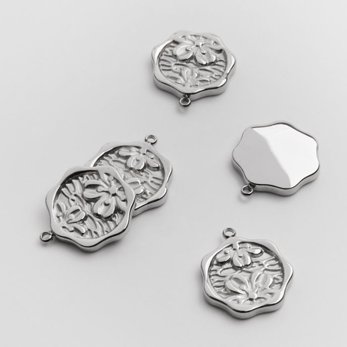 Zawieszka ze stali chirurgicznej siedmiobok z kwiatkami w kolorze srebrnym 16mm