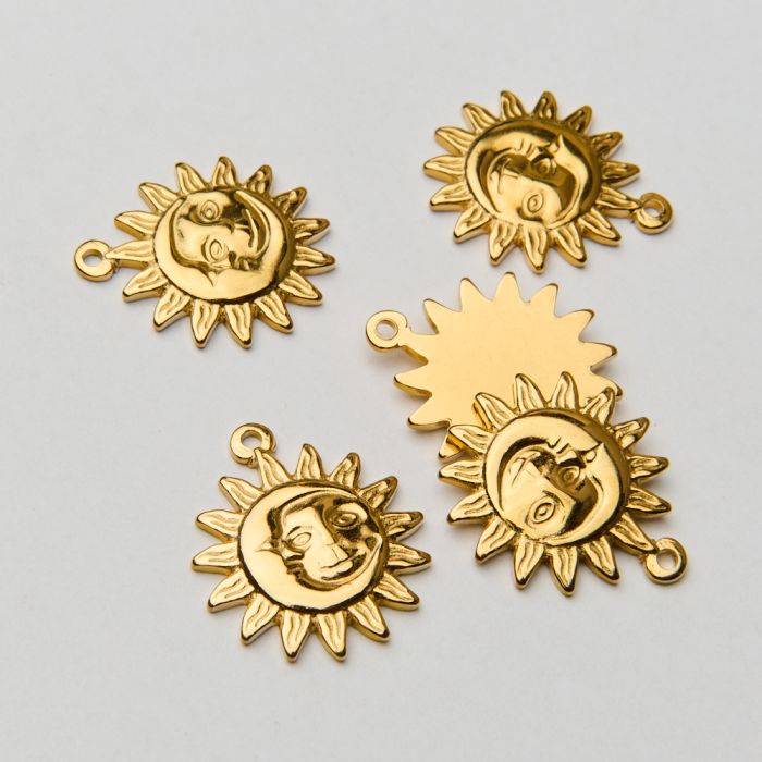 Zawieszka ze stali chirurgicznej słońce z księżycem w kolorze złotym 24mm PVD