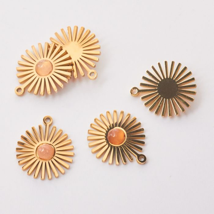 Zawieszka ze stali chirurgicznej słoneczko z kamieniem słonecznym w kolorze złotym 14mm