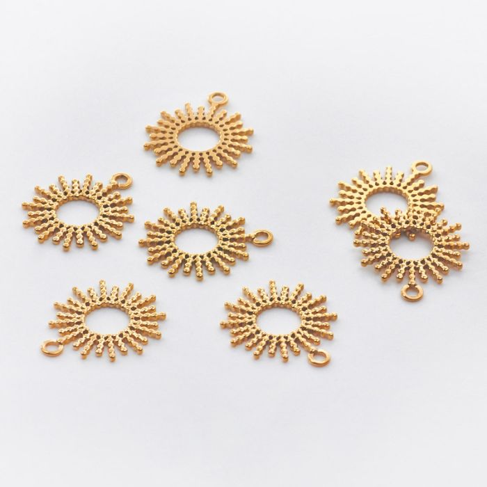 Zawieszka ze stali chirurgicznej słoneczko z promieniami w kolorze złotym 17,5mm
