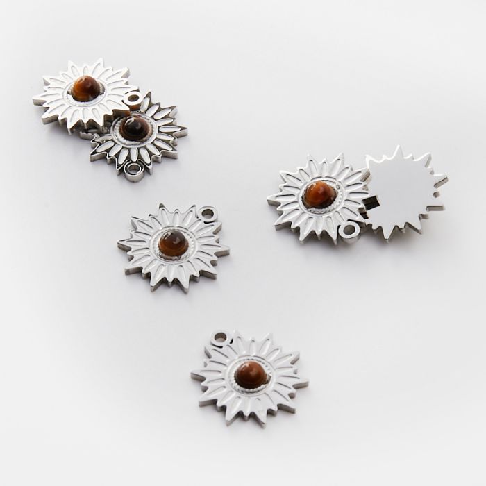 Zawieszka ze stali chirurgicznej słoneczko z tygrysim okiem w kolorze srebrnym 17mm