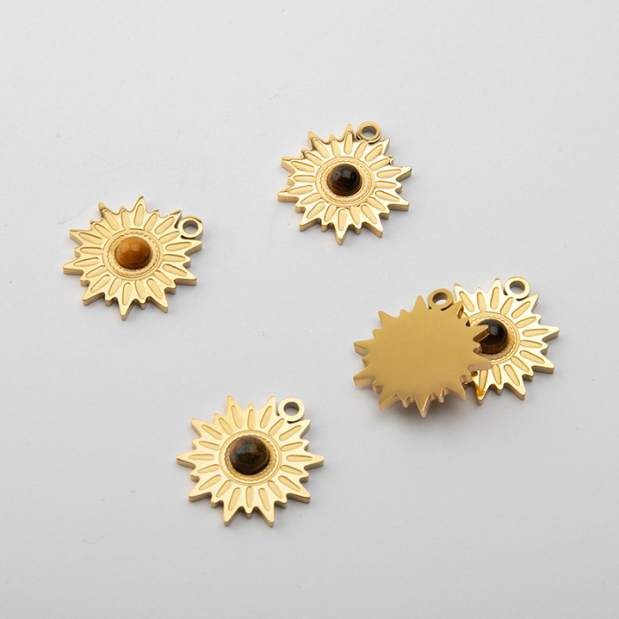 Zawieszka ze stali chirurgicznej słoneczko z tygrysim okiem w kolorze złotym 17mm PVD