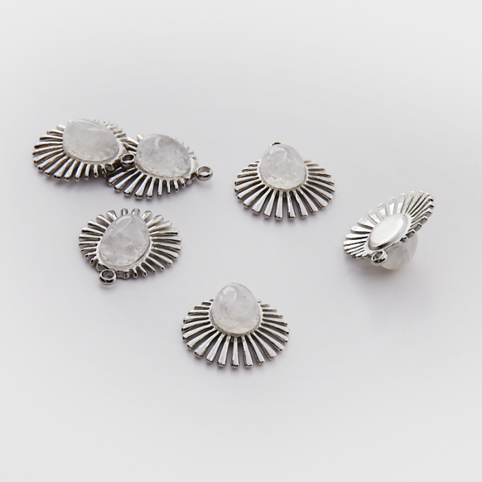 Zawieszka ze stali chirurgicznej wachlarz z kryształem górskim w kolorze srebrnym 15,5mm