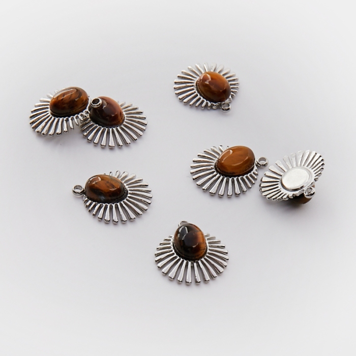 Zawieszka ze stali chirurgicznej wachlarz z tygrysim okiem w kolorze srebrnym 15,5mm