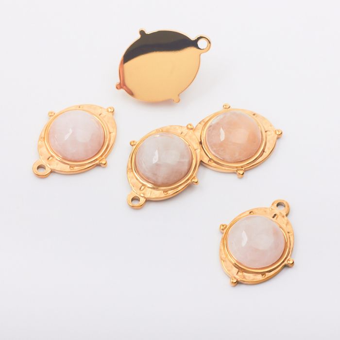 Zawieszka ze stali chirurgicznej z kamieniem słonecznym w kolorze złotym 20mm