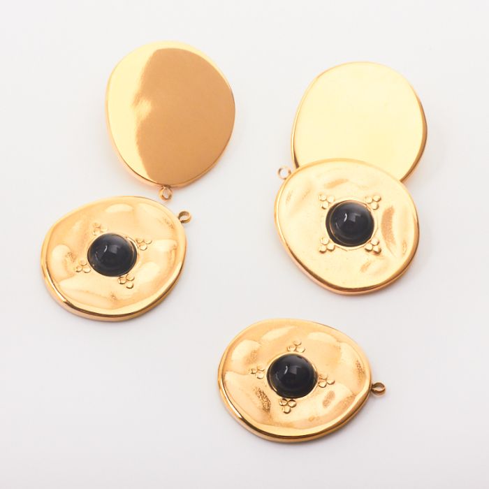 Zawieszka ze stali chirurgicznej z onyksem w kolorze złotym 20mm