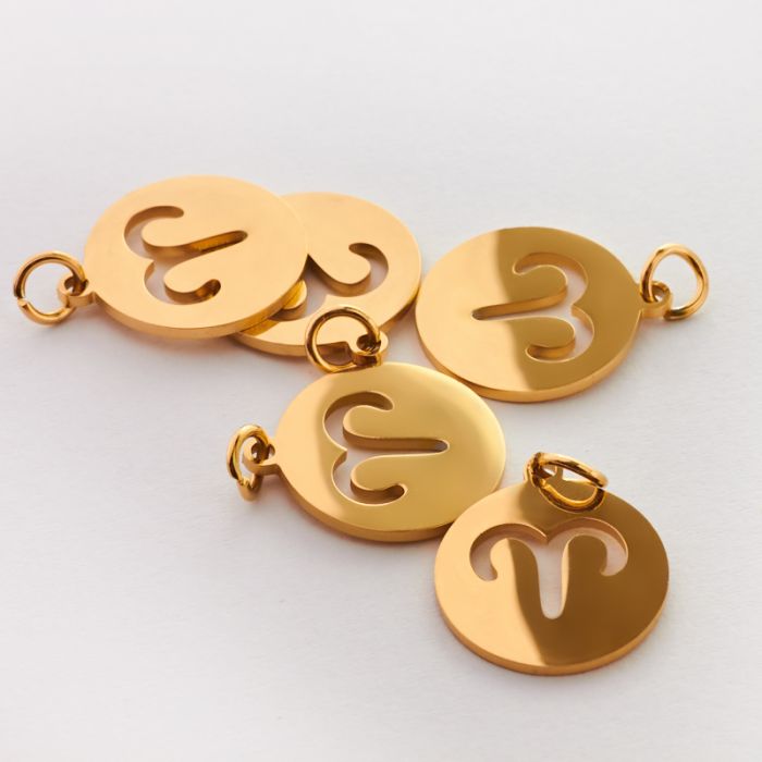 Zawieszka ze stali chirurgicznej znak zodiaku Bara w kolorze złotymn 15mm