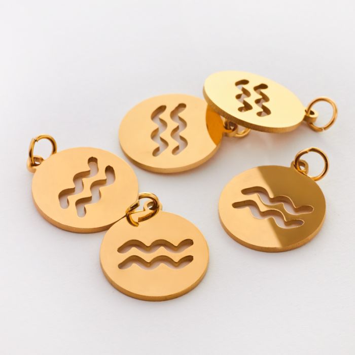 Zawieszka ze stali chirurgicznej znak zodiaku Wodnik w kolorze złotym 15mm