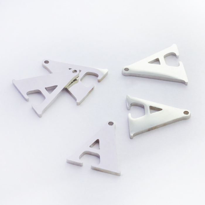 Zawieszka ze stali szlachetnej literka A w kolorze srebrnym 15mm