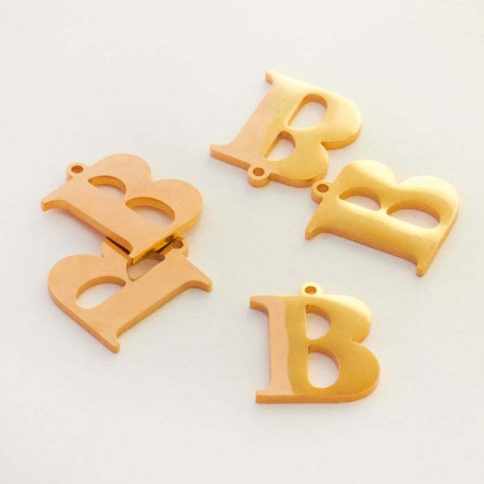 Zawieszka ze stali szlachetnej literka B w kolorze złotym 13,6mm