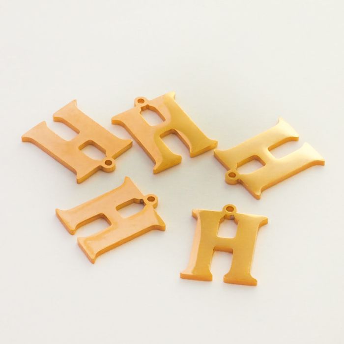 Zawieszka ze stali szlachetnej literka H w kolorze złotym 16,5mm