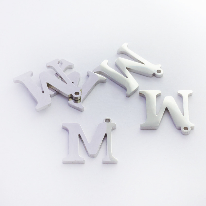 Zawieszka ze stali szlachetnej literka M w kolorze srebrnym 11mm