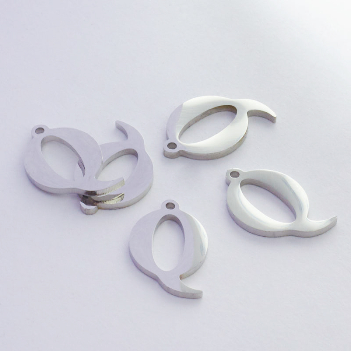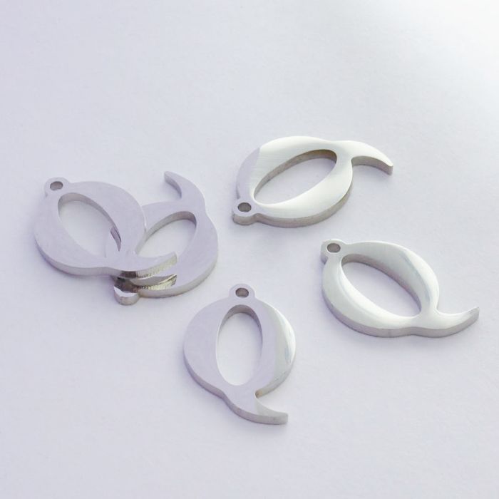 Zawieszka ze stali szlachetnej literka Q w kolorze srebrnym 14,1mm