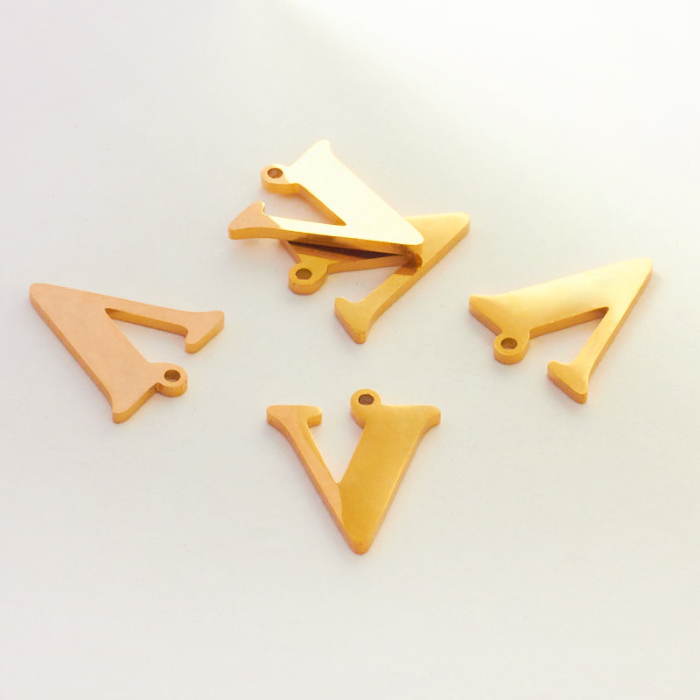 Zawieszka ze stali szlachetnej literka V w kolorze złotym 13,5mm