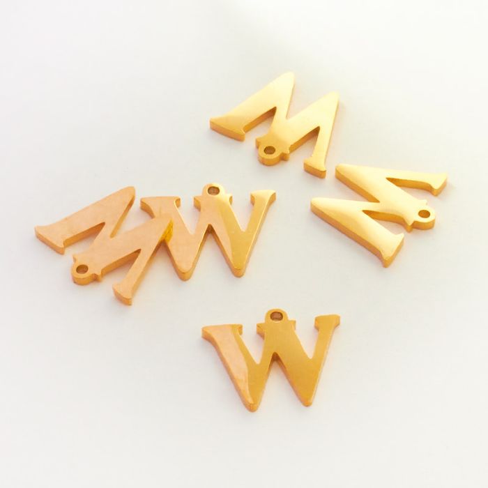 Zawieszka ze stali szlachetnej literka W w kolorze złotym 13 mm