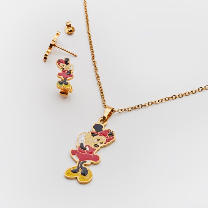 Zestaw dziecięcy naszyjnik z kolczykami ze stali chirurgicznej Myszka Minnie w kolorze złotym 45cm