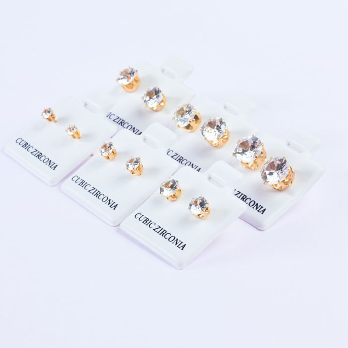 Zestaw kolczyków ze stali chirurgicznej z cyrkonią okrągłe ( 6 rozmiarów) w kolorze złotym 3-8mm