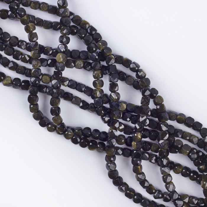 Złoty obsydian kostka fasetowana 4x4mm