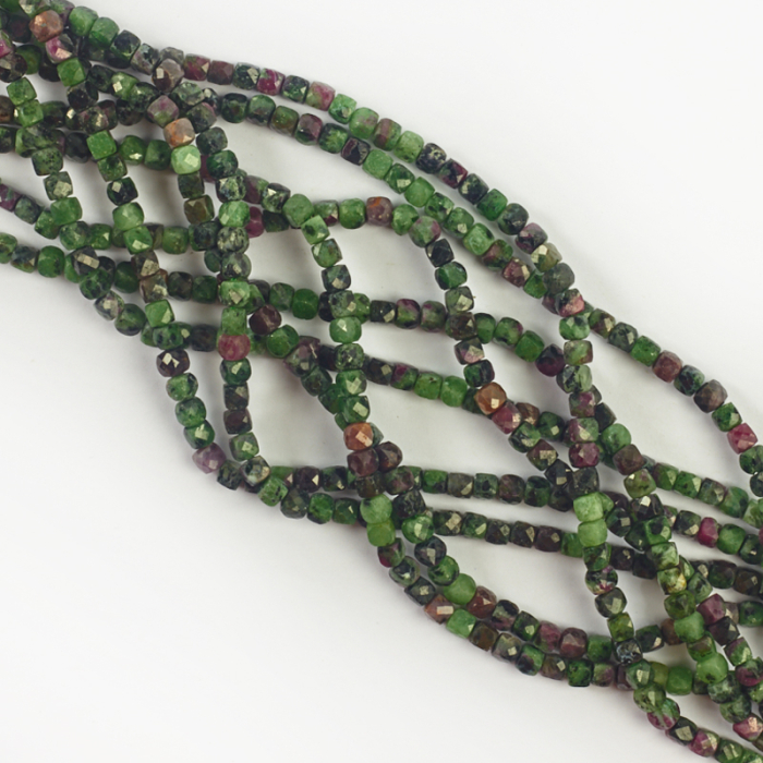 Zoisyt z rubinem kostka fasetowana 4mm