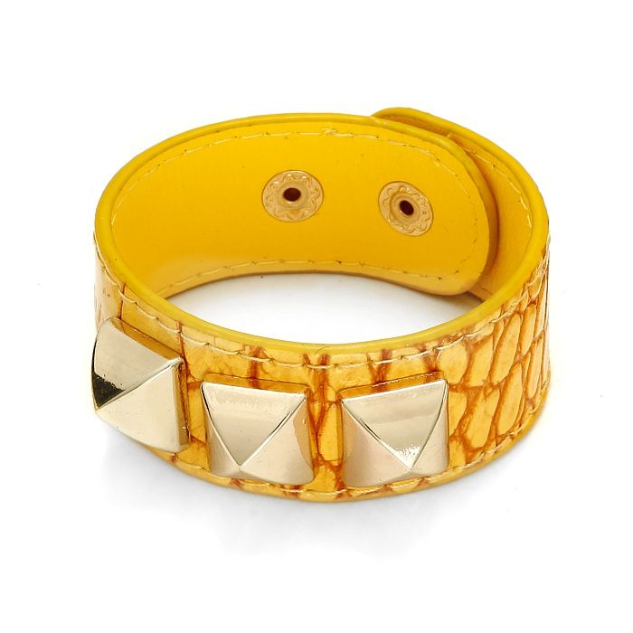 Żółta bransoletka skóra krokodyla z piramidami 18-21cm
