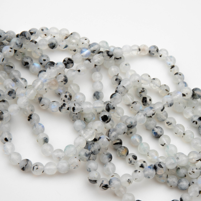 Kamień księżycowy z czarnym turmalinem kulka gładka 6mm