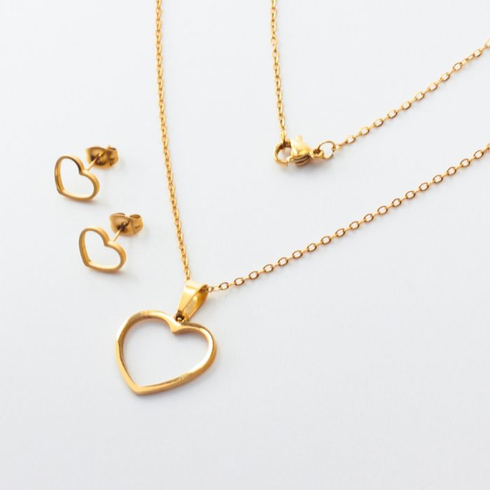 Komplet biżuterii ze stali chirurgicznej z kolczykami serce wycięte w kolorze złotym 45cm
