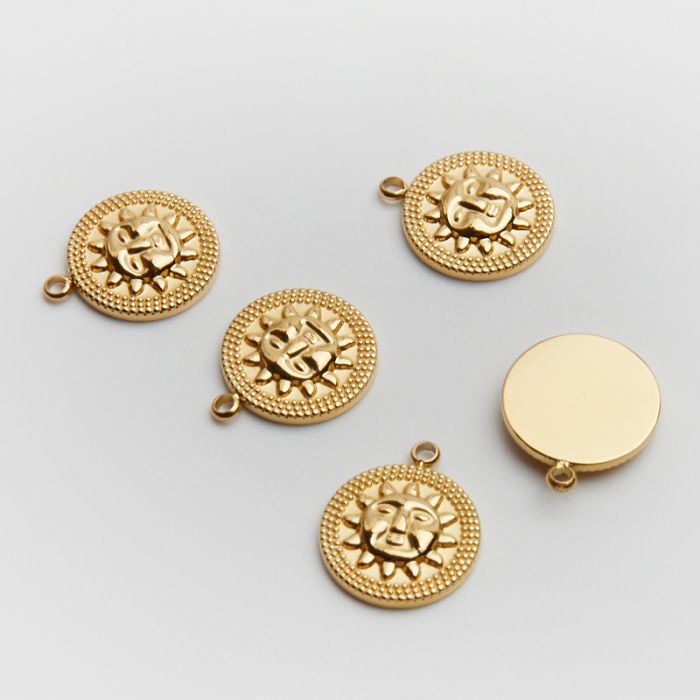 Zawieszka ze stali chirurgicznej kółko ze słoneczkiem w kolorze złotym 15mm PVD
